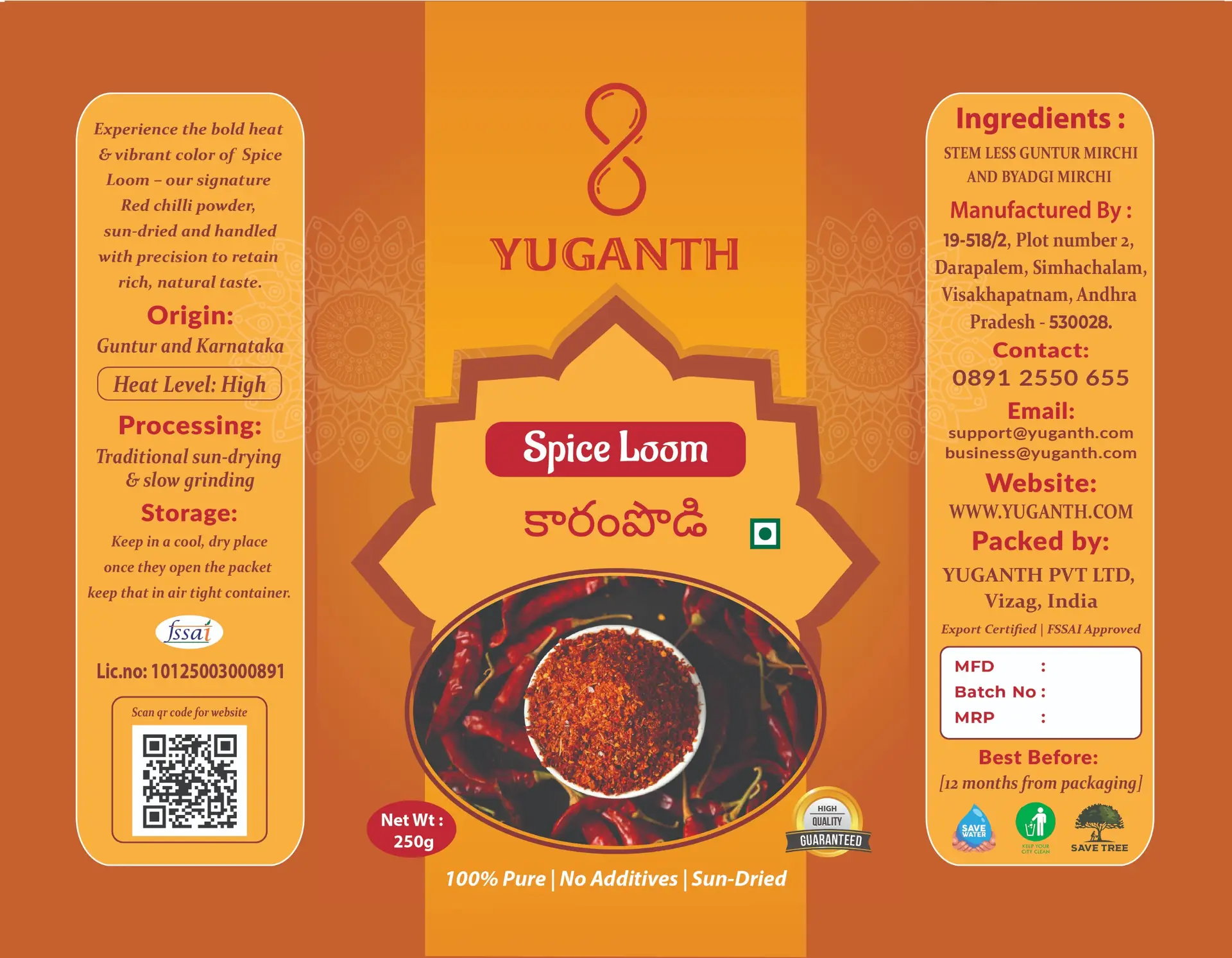 Spiceloom Mirchi Powder is crafted for those who prefer bold aroma and intense heat. Sourced from select regions of Karnataka and Andhra Pradesh, it offers a rustic and robust spice experience.